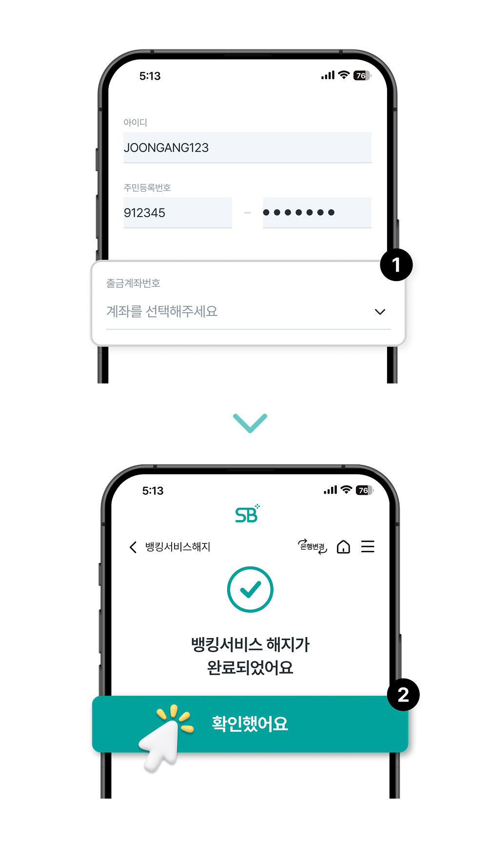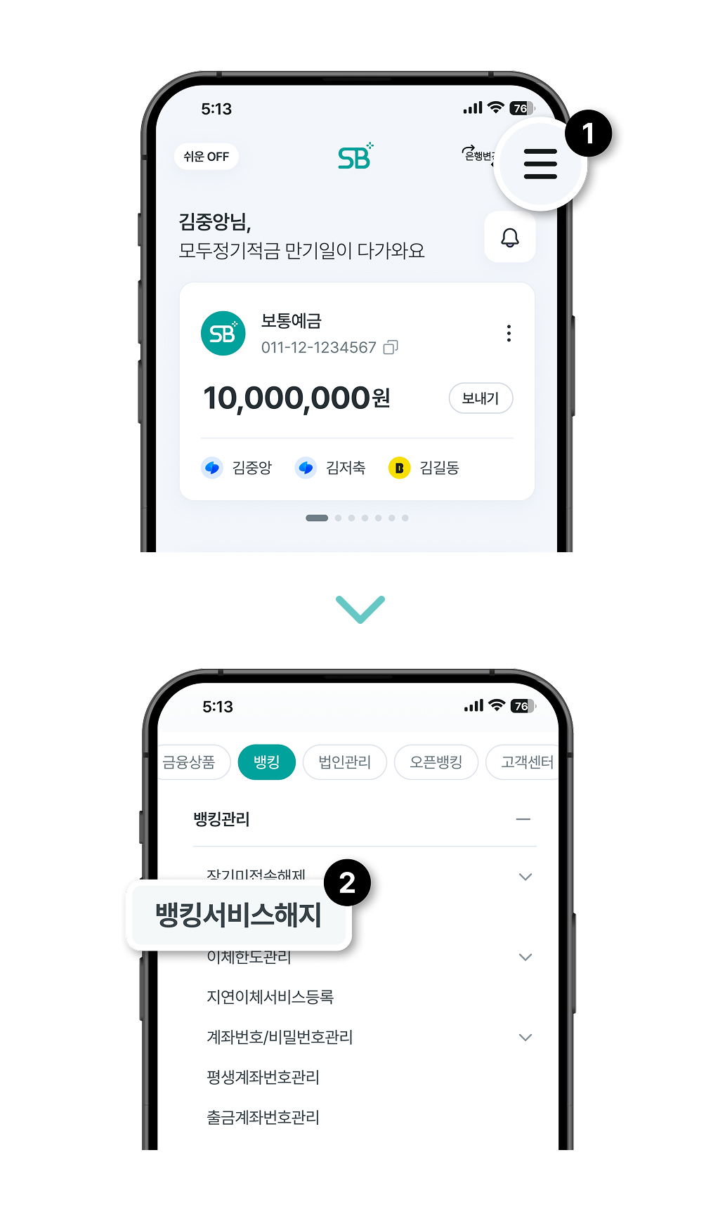 SB톡톡플러스 앱 탈퇴 화면 절차
